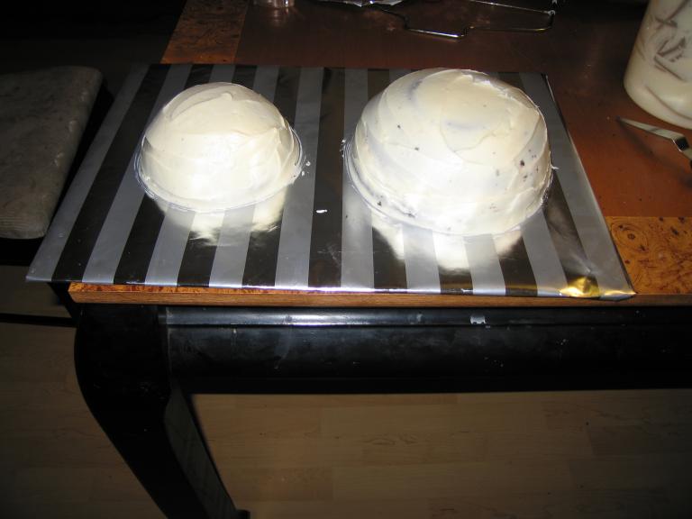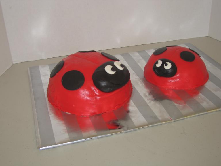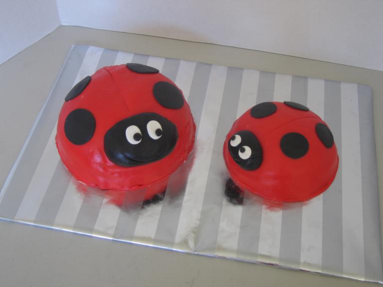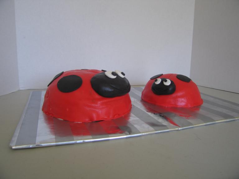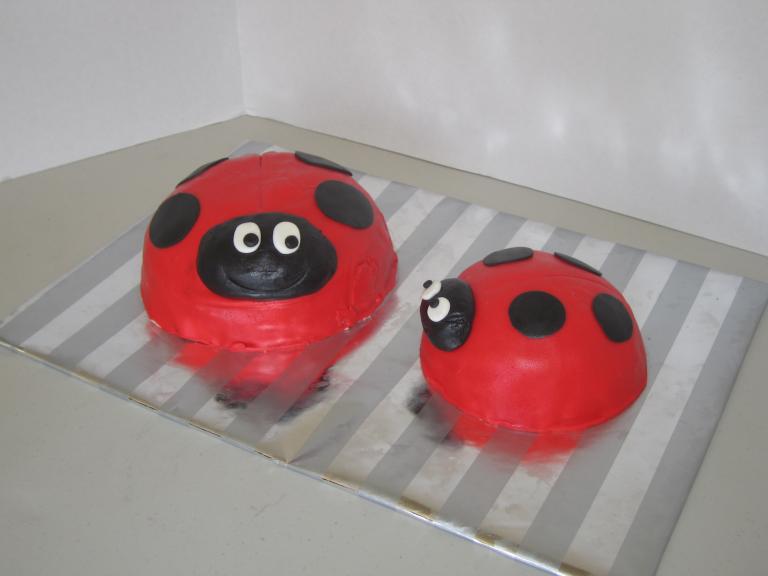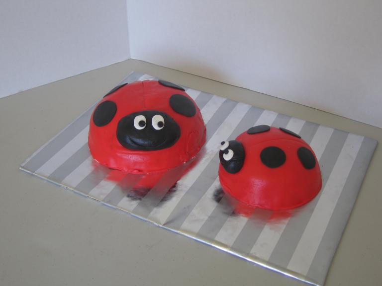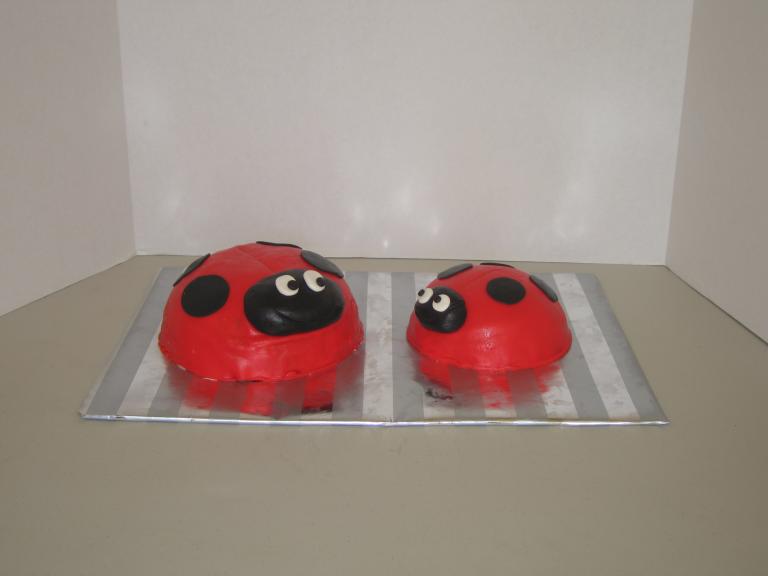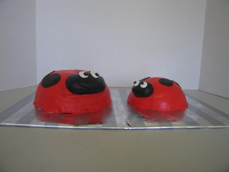 I used my soccer ball pan for the little ladybug, and a metal mixing bowl for
