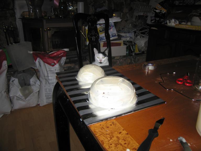 "helping" with my cake projects. Here she is, peeking over the edge of the