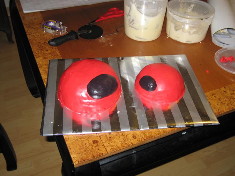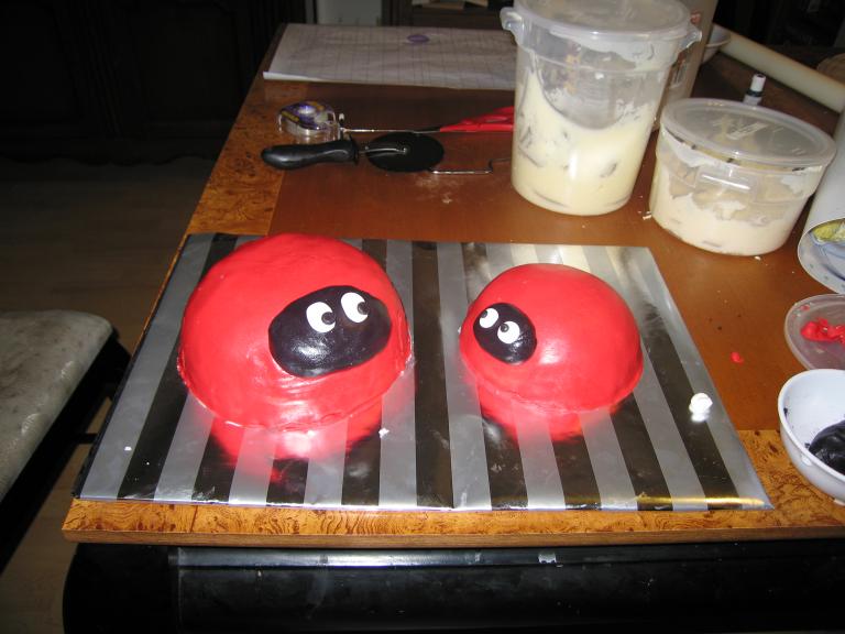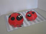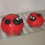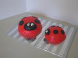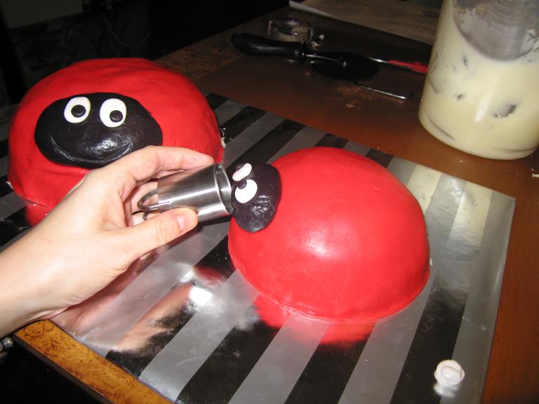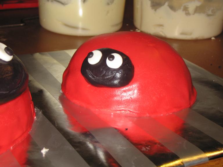I covered the frosted ladybugs with red fondant, and then made their heads