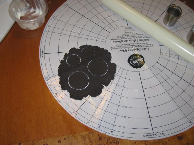 black fondant, and cut out a few circles for their dots. Somehow I forgot that