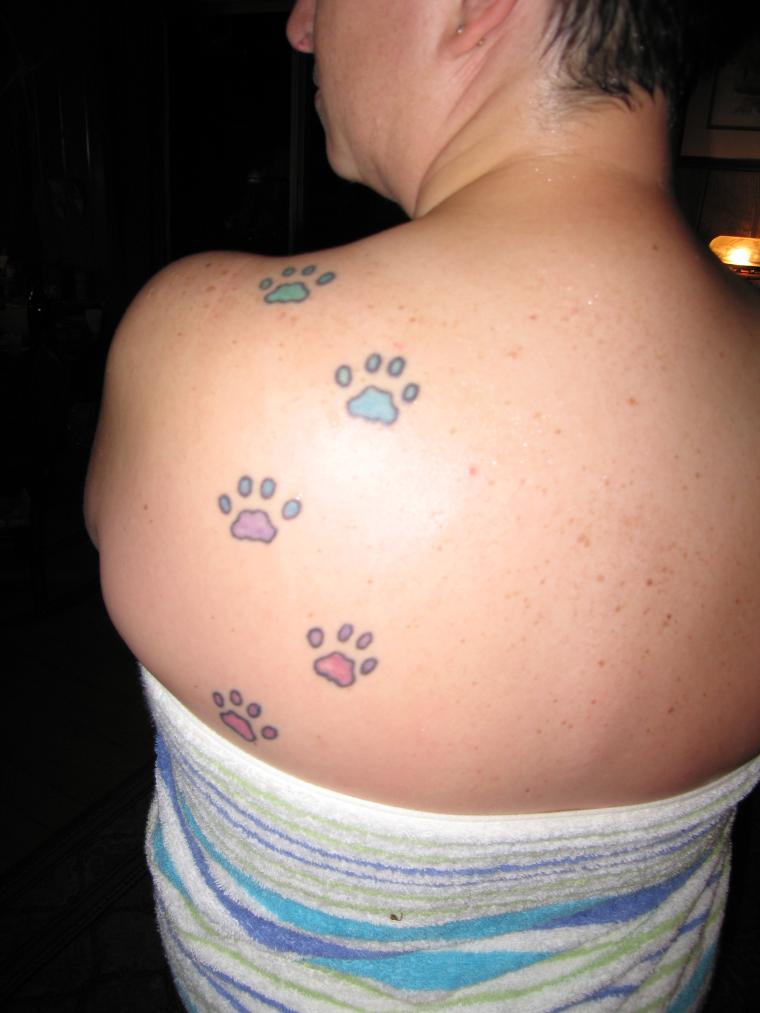 pendant that Sue usually wears, and Les's rainbow pawprint tattoo.