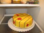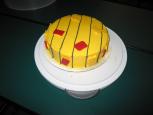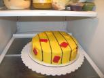 I started teaching Wilton cake decorating in 2006, and on the first day of Course I, I demo how to ice a cake. Once that's done ... I still have a cake! We're a small family, so it was handy that Aidon and I had a soccer referee meeting the following night! I refrosted the cake in referee yellow, put a few black pin stripes on, and made some red and yellow cards out of candy melts.