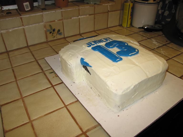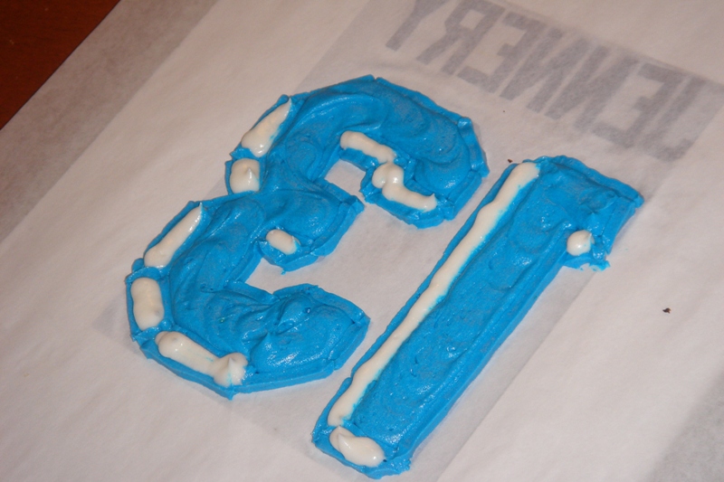 I piped a bit of blue on the sides of the cake, to match David's jersey.