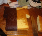 I started with two 12" square cakes - one vanilla, one chocolate. I cut each